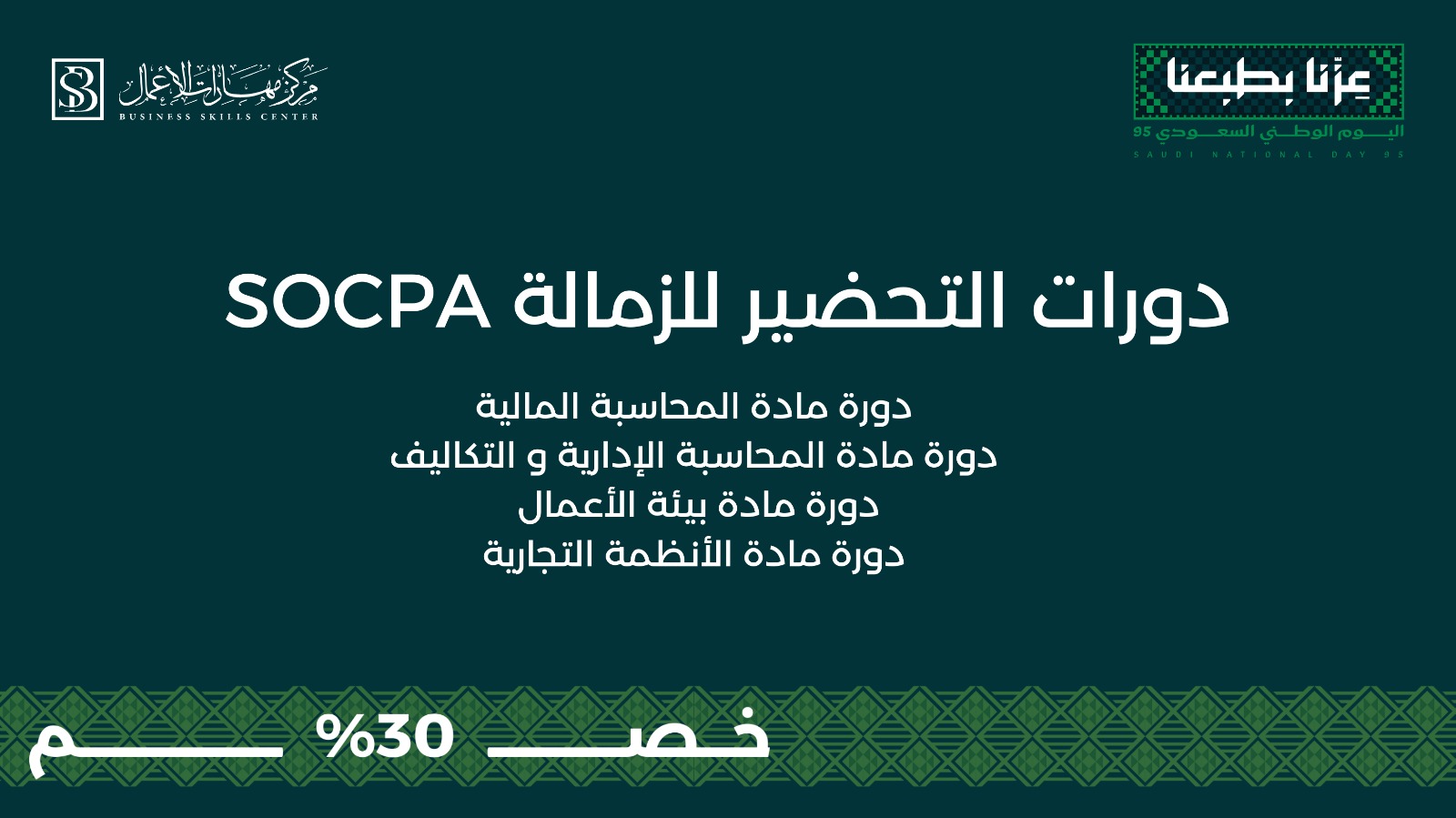تهدف هذه الدورة إلى تزويد المتدربين بالمعارف والمهارات اللازمة لاجتياز جزء المالية من اختبار الزمالة المهنية للمحاسبين القانونيين (SOCPA).